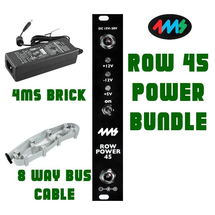 A bundle deal for getting you loaded with power right away! Includes the 4MS power module, 1 x Flying Bus cable (8 headers, 84hp standard), a 4MS Power brick PSU and UK plug. Different sizes/header amounts available for bus cables, just let us know what you’re needing.