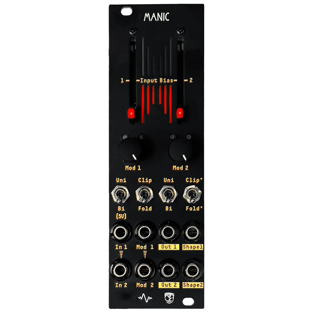 Designed to excel with both audio and CV signals, Manic effortlessly processes incoming signals for a broad spectrum of uses. The intuitive layout ensures immediate hands on control making it ideal for live performance and studio experimentation.