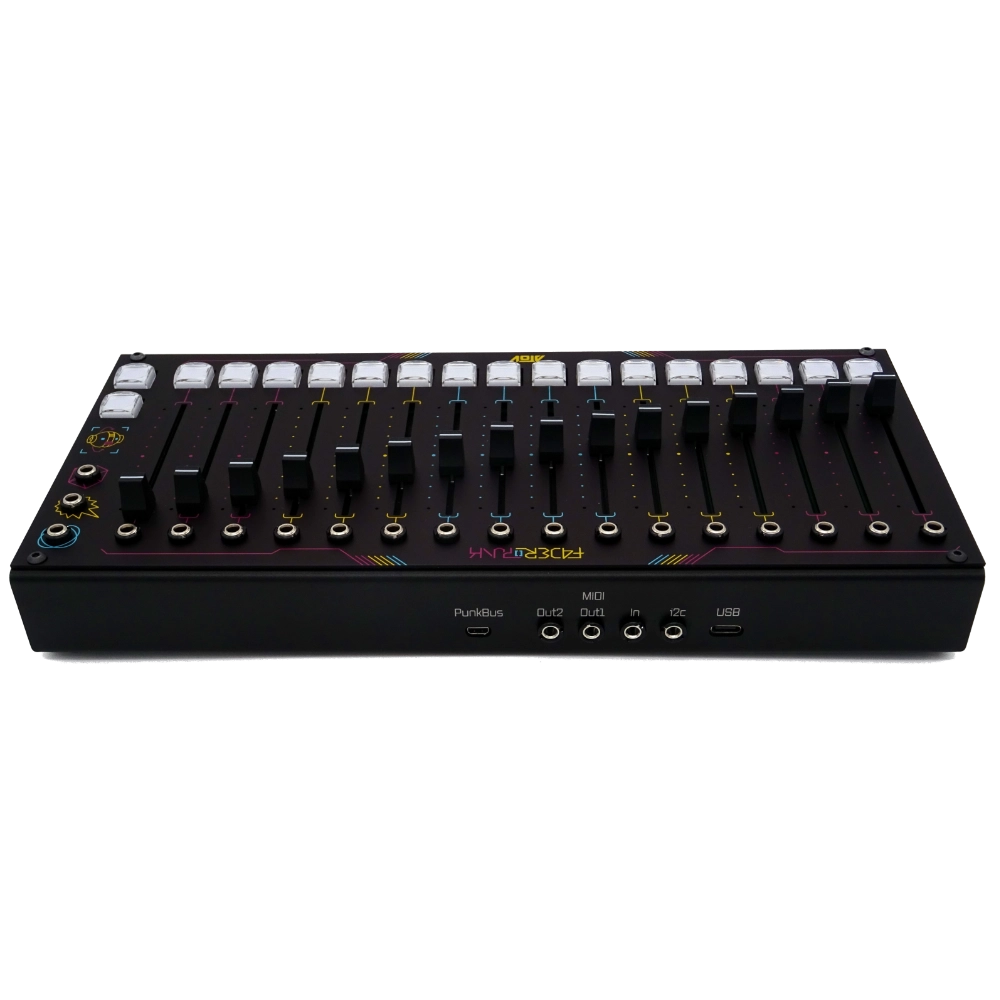 Faderpunk runs up to 16 simultaneous apps. This allows you to dynamically adapt it to your functional needs. It can augment your MIDI synthesisers, expand your voltage controlled Eurorack system and enhance your USB connected DAW experience, while looking obnoxiously great.