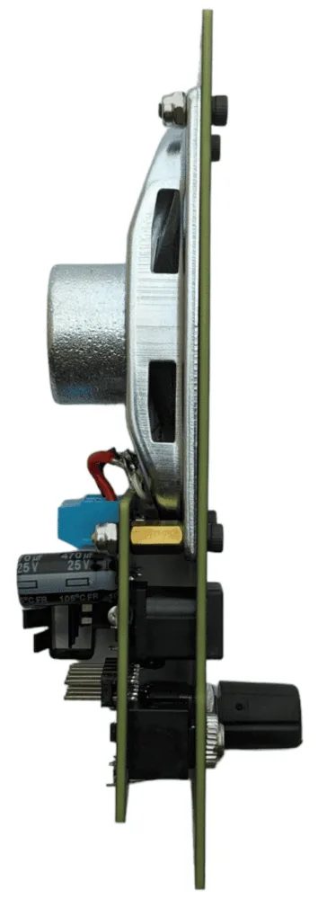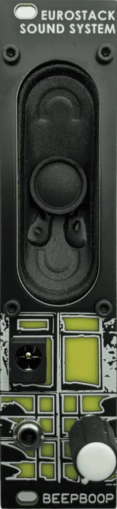 The Beepboop Eurostack sound system module is a 6HP speaker / transducer for your Eurorack system. The Module is ideal for portable systems or for experimenting with real world feedback. This V2 version also includes a DC jack port for use with either an external speaker or transducer.