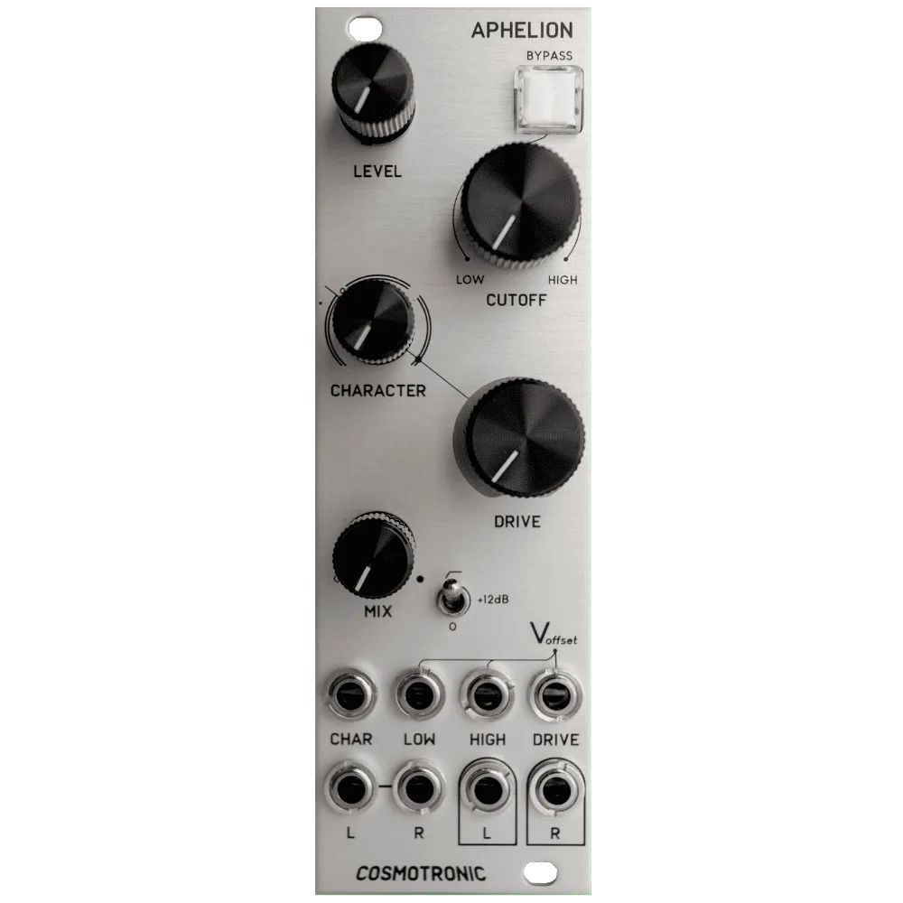 Aphelion packs a fully analog stereo distortion and DJ-style filter into a compact 8HP design, making it ideal for both live performances and studio setups. It features three independent distortion circuits: a soft clipping overdrive, a saturating wavefolder, and a RAT-inspired distortion. You can seamlessly interpolate between these using the Character knob or a CV signal, offering a wide spectrum of distortion from subtle warmth to aggressive grit.