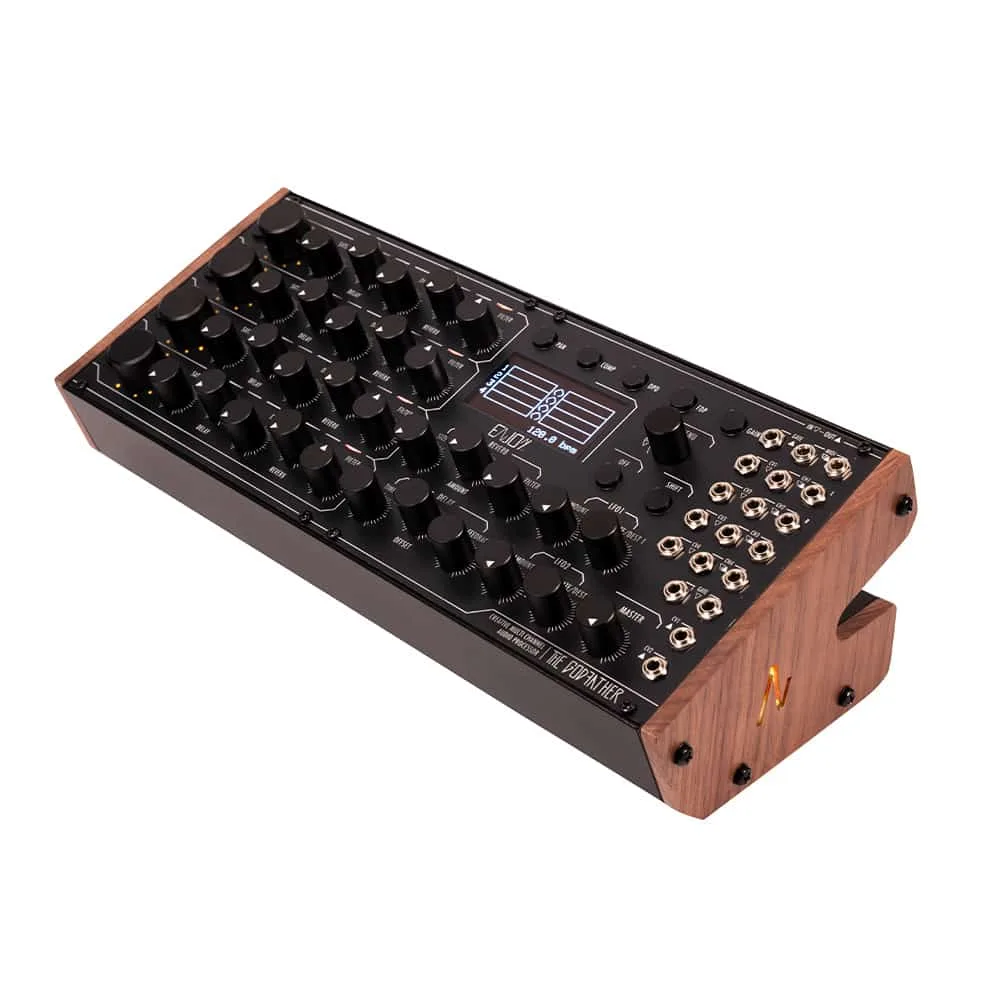 Syncs with the rest of your setup via MIDI or CV Clock, receives external signals, or controls other devices. All housed in a 60Hp semi-modular rack, offering total manipulation of audio, MIDI, and CV and crafted with the attention to detail typical of a Made in Italy product; using high-quality potentiometers, aluminium knobs, durable finishes, and precious wooden side panels
