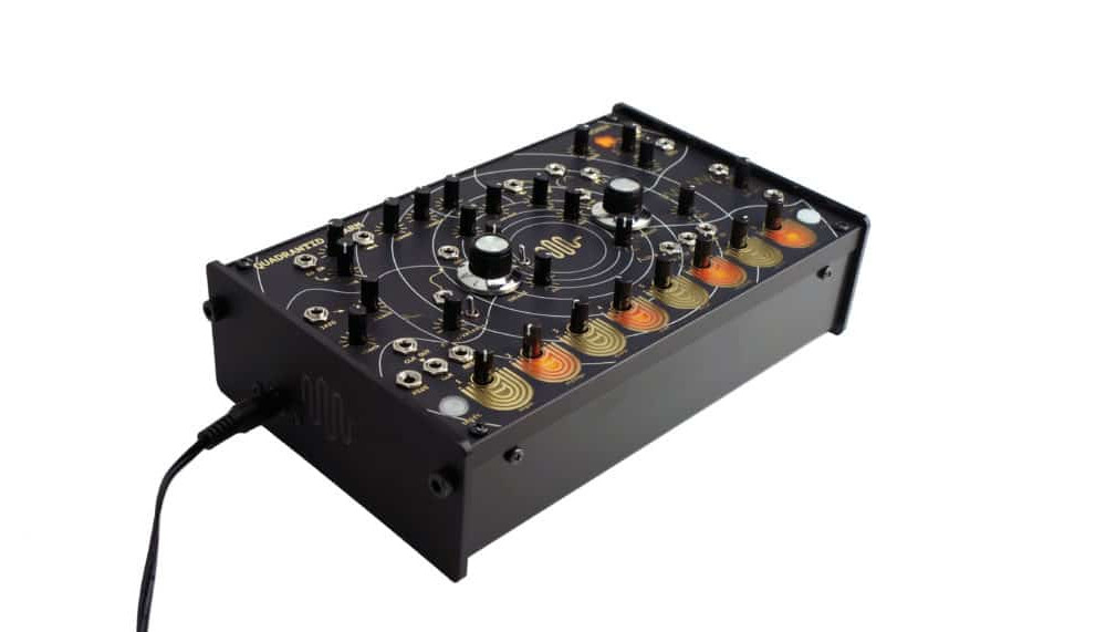 The Quandrantid Swarm is a digital synthesizer that features a percussive element to give it a unique sound. It contains a two-pole analog filter, an LFO with eight waveforms, and a spring reverb. The eight touch keys can be used as a mono keyboard, polyphonic keyboard or an eight-step sequencer. The Quandrantid Swarm has MIDI and CV/Trig connectivity. Its normalized pre-patching allows you start creating immediately, but its semi-modular design allows you to use patch cables to explore the potential of this instrument.