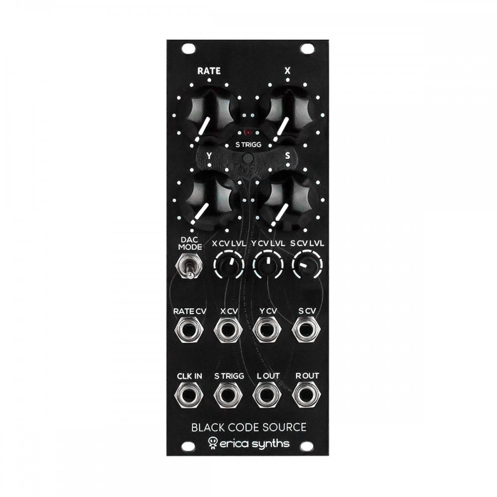 Erica Synths Black Code Source is unique design true stereo digital noise or dual random CV generator, using a complicated calculation of polynomials of various configurations. The module will fit ideally in percussion synthesis or random, self generation patches. The Code Source also can be used as an extreme effects unit to bitcrush and destroy sounds in radical ways.