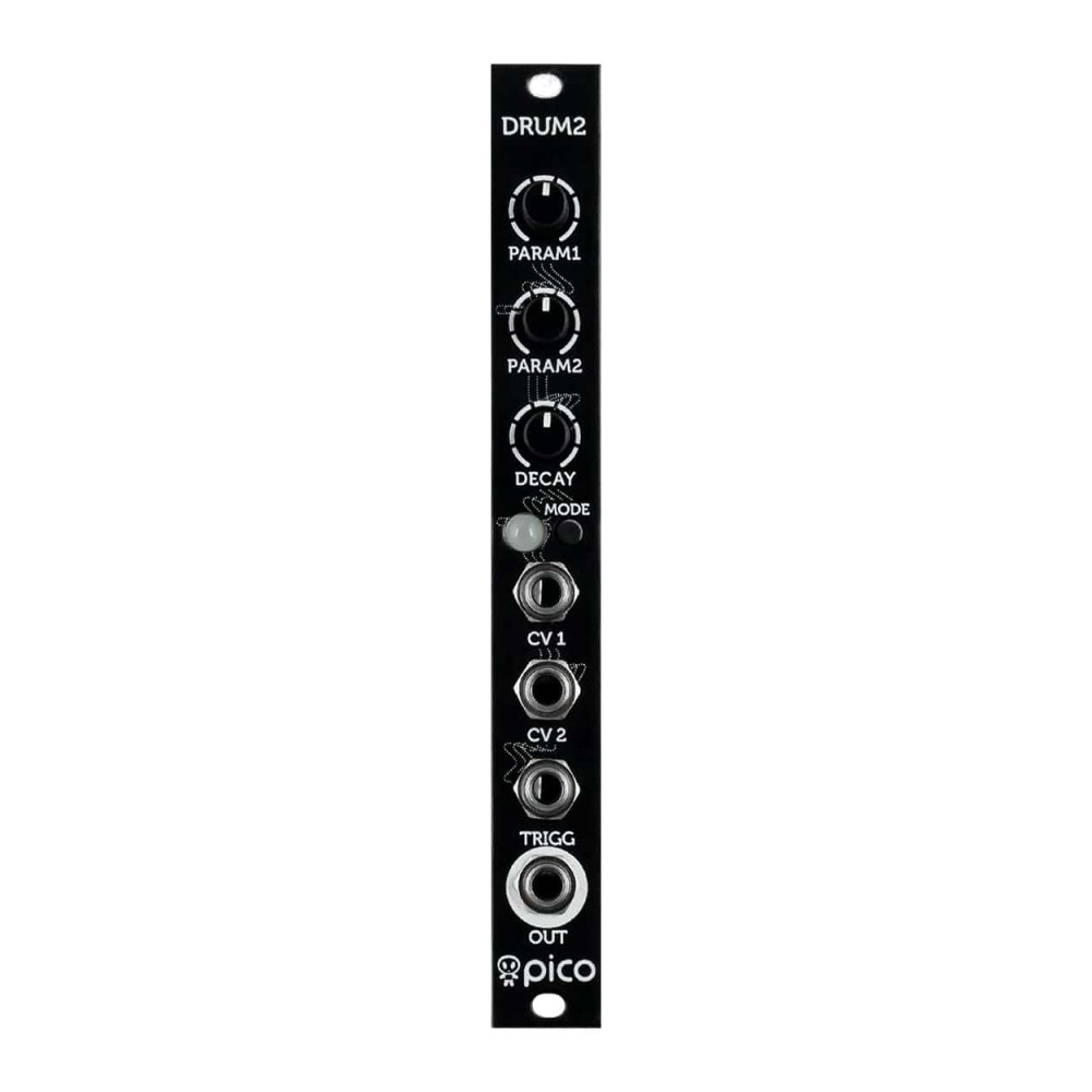 Pico Drum2 is compact yet versatile percussion synthesizer in a 3 HP eurorack module. It features 8 drum synthesis algorithms created to deliver distinct sounds to your modular system. Each algorithm offers a lot of flexibility therefore a big sounding bass drum and a squelchy snare can be dialled in within the same algorithm. It also tracks 1V/Oct and all parameters can be mapped to the CV1 input.