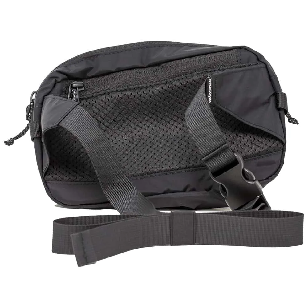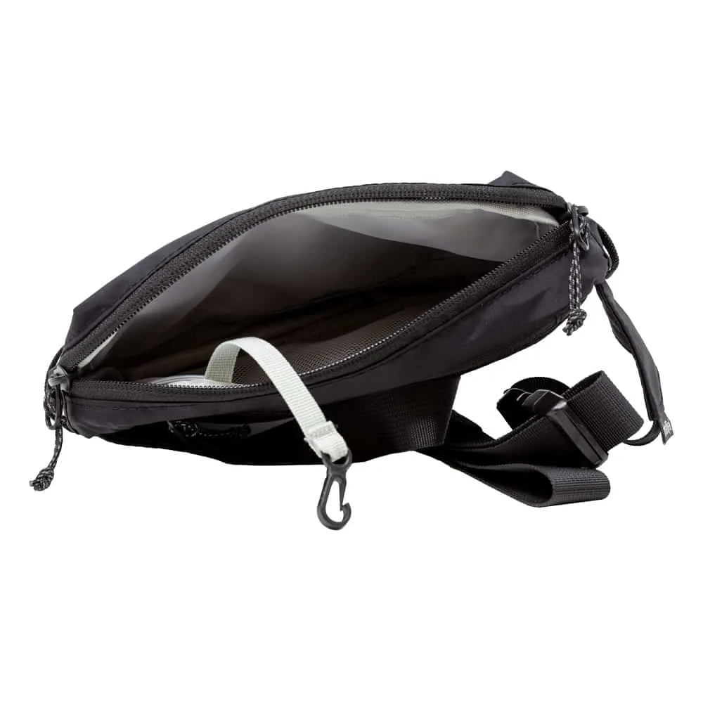 Long adjustable strap can be used for waist, hips, or across the chest.