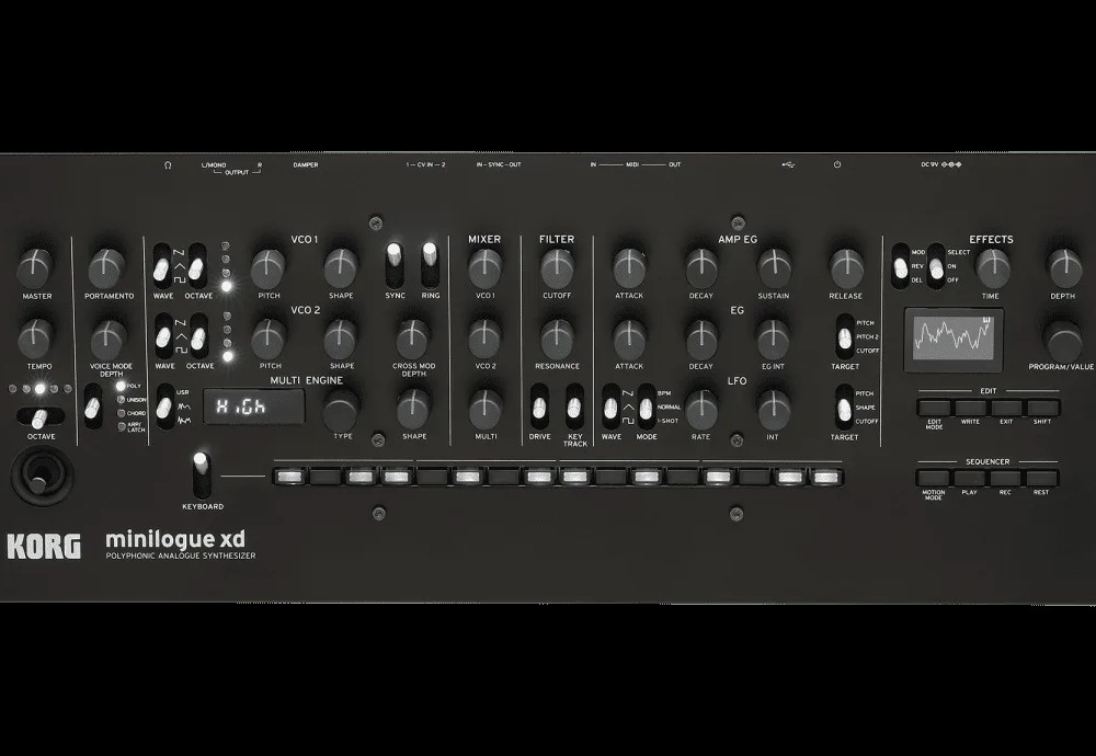 The Korg Minilogue XD is a next-gen poly synth that continues the Minilogue tradition of powerful performance and sound design possibilities. The Analogue world meets Digital sounds for a truly hybrid synth.