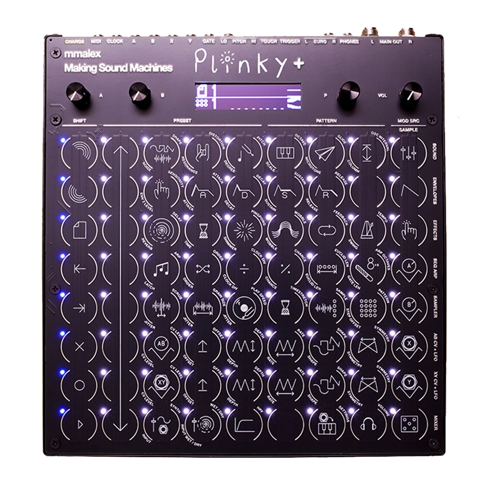Plinky+ is an 8 voice expressive polyphonic touch synthesizer that specialises in fragile, melancholic sounds. It is an extra-large deluxe version of the original Plinky, upgraded in a collaboration between original designer mmalex and Making Sound Machines.