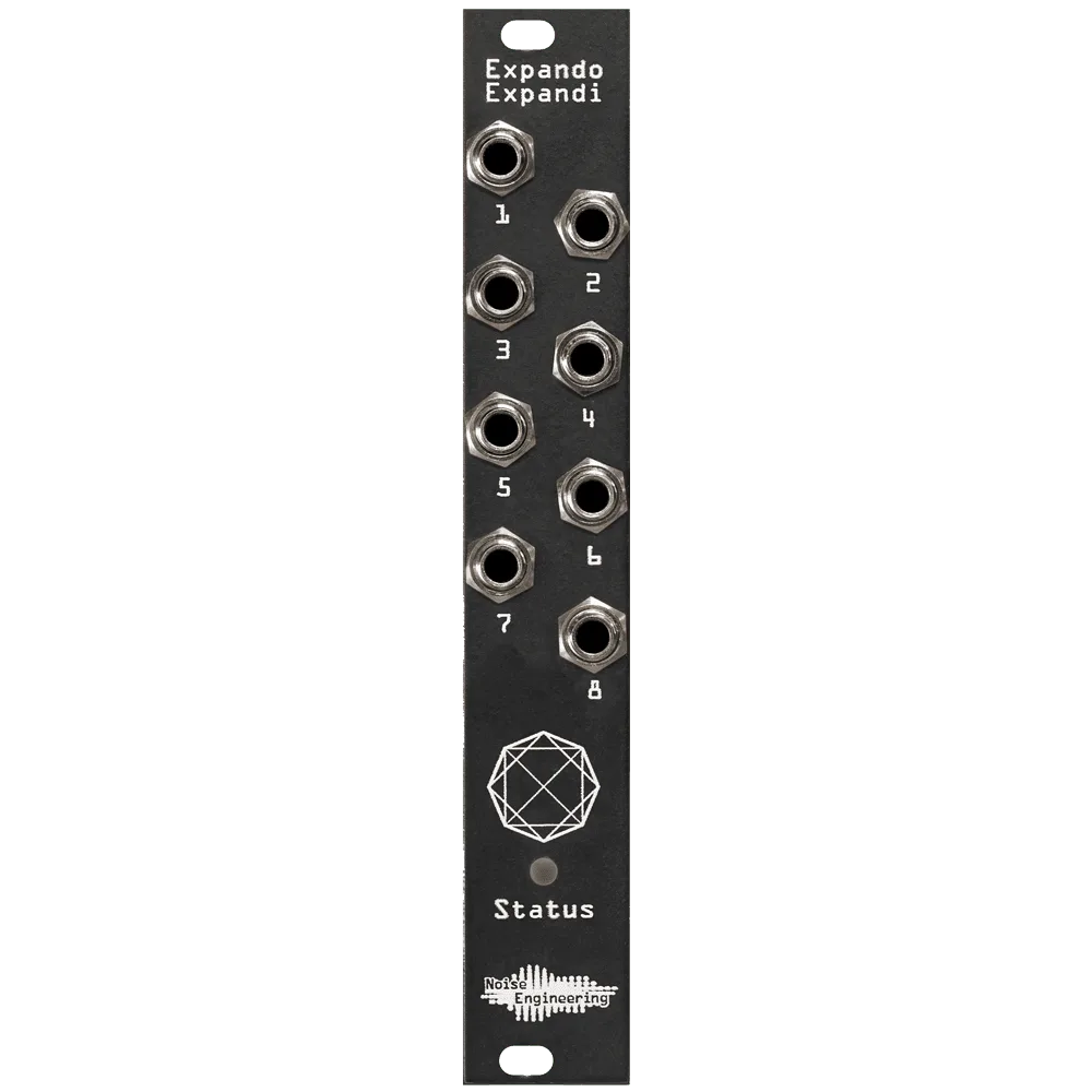 Expando Expandi adds 8 freely assignable CV inputs to the Xer Mixa in just 4 HP. Connect up to two Expando Expandi to Xer Mixa for easy CV control over channel levels, pan, aux sends, and more.