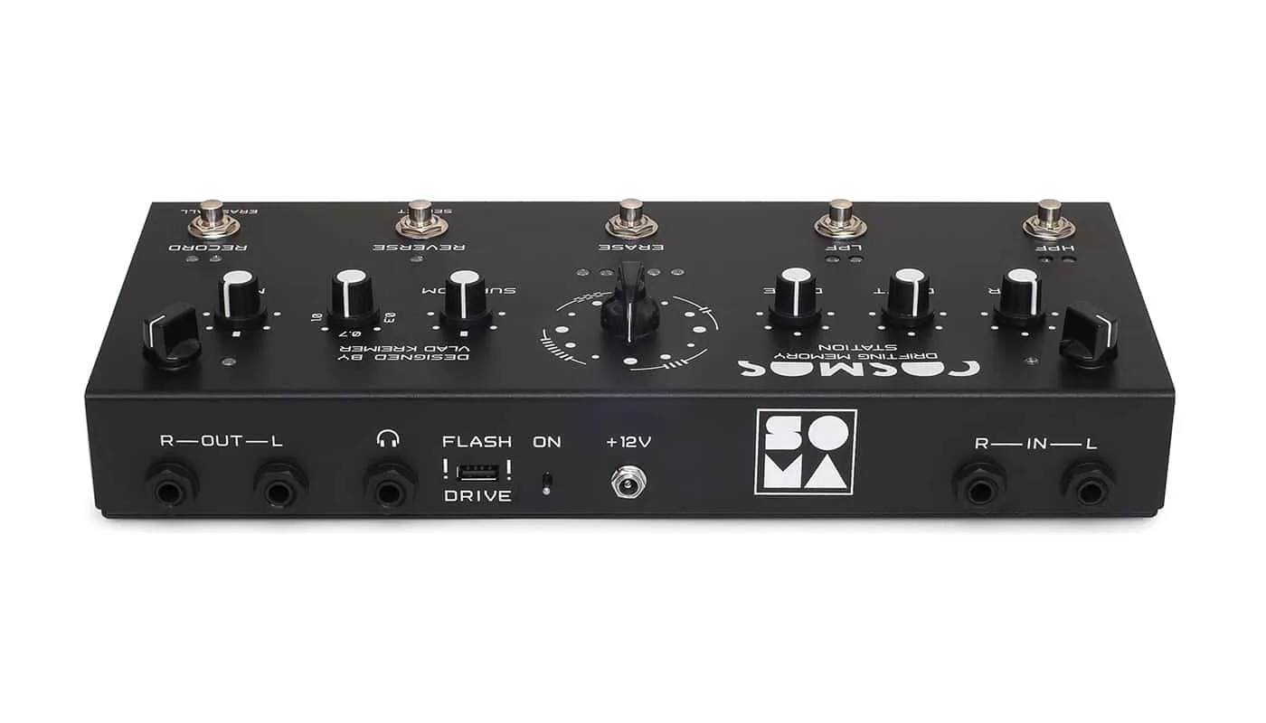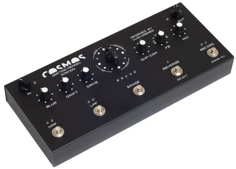 From a functional point of view, COSMOS is a large array of sound memory, in which recorded sounds undergo constant recombinations, spontaneously generating an ever-changing soundscape. This is achieved in three ways — by a mathematical shift based on the relationships between large prime numbers (the size of all delay lines are different primes), an asynchronous operation of the LFO, and modulation with a slowly changing chaotic signal. As a result, it allows the endless layering and processing of various sounds, as in a looper, but without an intrusive, repetitive loop.